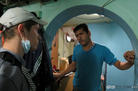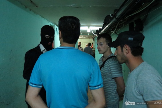 В подвале «Щит Москвы» ждали (точнее, не ждали) человек 30, не меньше. Большинство из них первое время даже не понимали, что же все-таки происходит, и продолжали заниматься своими делами. Впрочем, местный «старшина» попытался взять инициативу в свои руки. Говорил он о правах и законах, но наотрез отказывался признать, что сам нарушает законодательство Российской Федерации.Активисты предлагали гастарбайтерам написать заявление, некое подобие явки с повинной, говорили, что если напишут, то их быстрее из полиции отпустят, которая, кстати, уже спешила на вызов. Впрочем, нелегалы не спешили ничего писать, зато большинство из них ссылалось на какое-то «начальство». Некоторые рассказывали о том, что здесь их поселил ЖЭК.