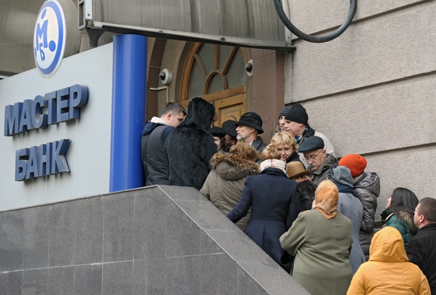 Клиенты у входа в главный офис Мастер-банкаФото: Геннадий Гуляев / Коммерсантъ