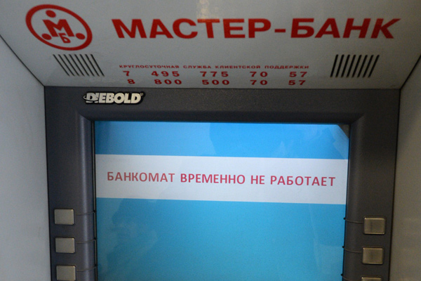 Мастер-банк также был во многом ориентирован на работу с физическими лицами, только отзыв у него лицензии стал событием еще более масштабным. Мало того, что объем застрахованных вкладов в нем превышал 30 миллиардов рублей (по предварительной оценке АСВ), так он еще и обладал одной из крупнейших в России банкоматных сетей. Банк и его партнеры (включая семь иностранных) владели в общей сложности 2,8 тысячи устройств выдачи наличных.