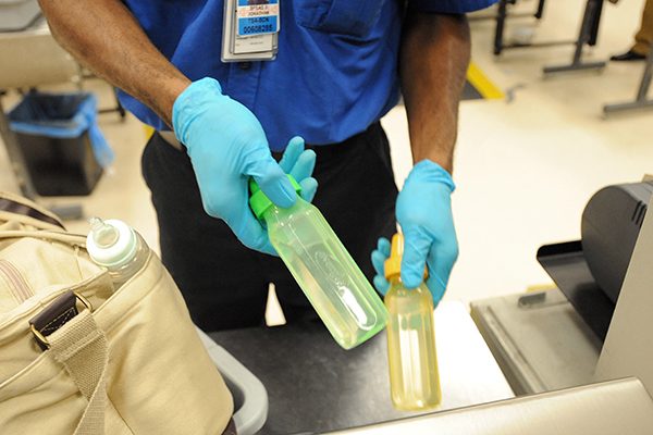 Сотрудник Управления безопасности на транспорте США проверяет детские бутылки в аэропорту Атланты Фото: Erik S. Lesser / AP