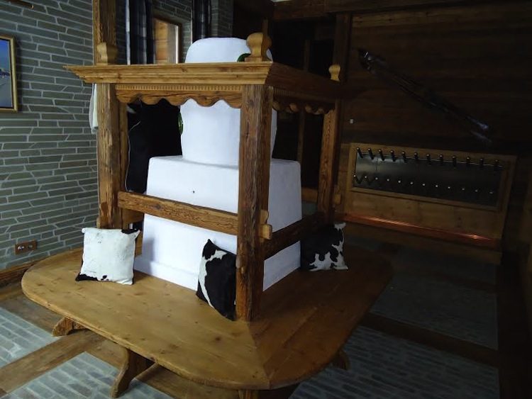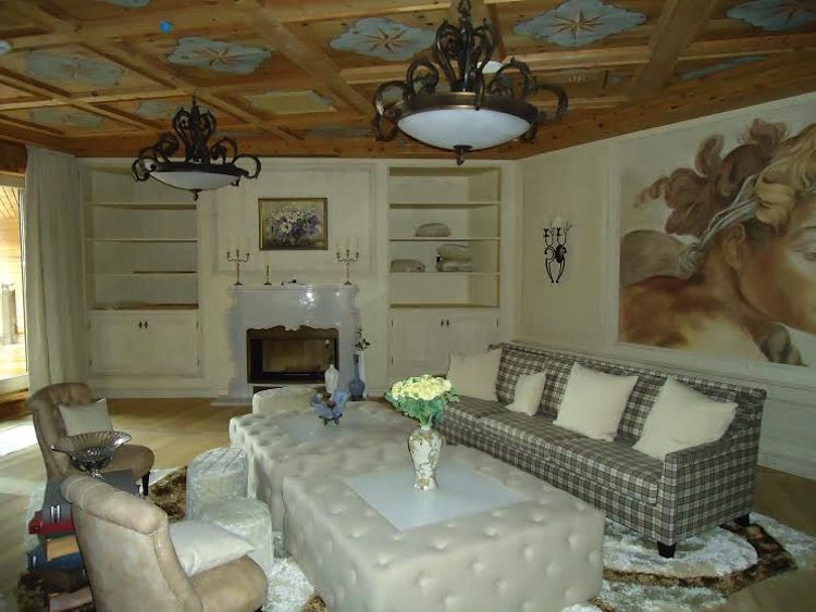 «Барский дом» снаружи похож на уютное горное шале, а внутри еще более эффектен: в просторной прихожей с колоннами два камина, а также лифт, который может отвезти на второй этаж в спальни. На первом этаже есть кабинет, на стене которого висит фотография Медведева Владимиром Путиным на лыжах, рассказывает Мальгин. Тут же на первом этаже бассейн, сауна, турецкий хаммам и небольшой тренажерный зал. На втором этаже две хорошие спальни — с просторными гардеробными комнатами и большими санузлами, и еще две — попроще. Есть и третий этаж, но что там — неизвестно.