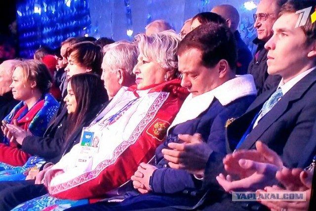 Справедливости ради стоит сказать, что у всех болельщиков — счастливые лица и никак не похоже, чтобы у них были большие проблемы. Красота в этих сочинских горах необыкновенная. Кто бы знал о том, что там живая Швейцария? А уснувший Медведев, пожалуй, пока самое лучшее, что случилось на этой неоднозначной Олимпиаде. Спит обычный дядька, обалдевший от проблем. И ему совершенно по барабану весь спектакль с открытием, такая на редкость человеческая картинка с ним, что даже может на некоторое время и примирить наше несчастное, тысячу раз обворованное и оболваненное населения с его безалаберной властью. Пусть вздремнет хоть на пять минут, а то ведь хлопочет без устали о судьбах россиян.(((