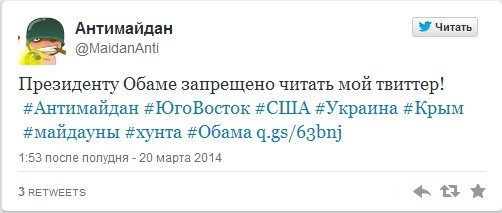 А пользователи сайта Picabu предложили свой флешмоб — наклейки на машины и маршрутки с надписями «Санкция против США: Бараку Обаме запрещается садиться в мою машину!». Отдельного взрыва креатива у пользователей Picabu заслужило решение Соединенных Штатовотправить новым украинским властям сухие пайки: на «фотожабах» оказались изображены пряничные человечки, восклицающие «Слава Украине!» и «Погибать, так за печеньки!»