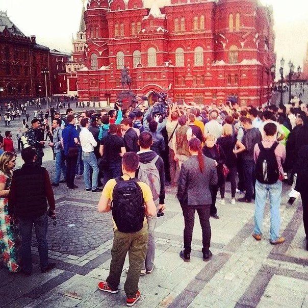 Впрочем, как сообщает пресса, на 21:00, 22:00 и даже 23:00 на Манежной площади оказалось… почти пусто. Там, как пишут очевидцы, собрались лишь десятки журналистов, блогеров и пара активистов — причем один из них убеждал собравшихся в необходимости «кровавого Майдана для очищения России», несмотря на националистический уклон в «рекламе» акции — заявлял о необходимости вернуть Крым и не мешать карателям действовать в Новороссии, а с другой стороны — появилась группа людей в футболках с портретом Сталина, пришедшая разгонять «Майдан». Их лидер, если верить порталу «Евразия», вступил в спор и был задержан.