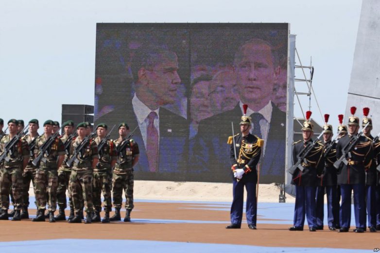 В то время как Олланд, Обама и Елизавета II посещали американское и английское кладбище, Путин беседовал с Ангелой Меркель в Довиле.