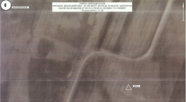 «Обратите внимание, что данная пусковая установка отсутствует. На снимке 5 видно, что утром этого же дня в районе населенного пункта Зарощенское, что в 50 километрах восточнее Донецка и в 8 километрах южнее Шахтерска, обнаружена батарея „Бук“», — сказал генерал.