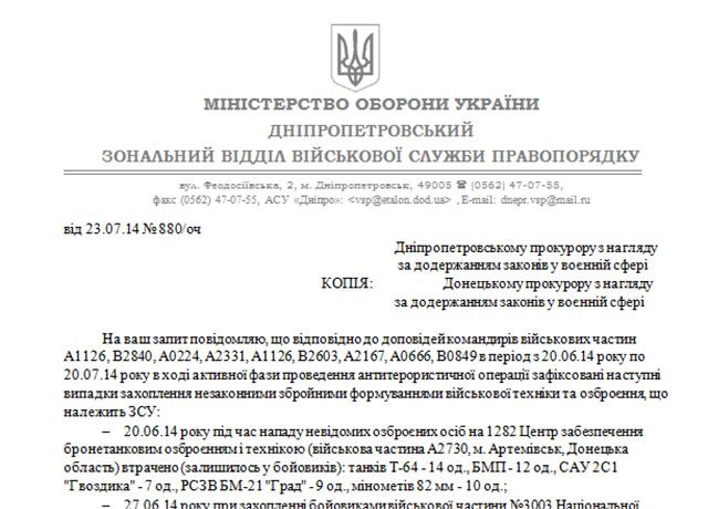 В другом документе говорится о случае 23 июля на одном из украинских блокпостов, где 32 бойца покинули место несения службы, переодевшись в гражданскую одежду. Кроме того, хакеры получили свидетельство того, что военная техника ВСУ часто переходит в руки ополчения.