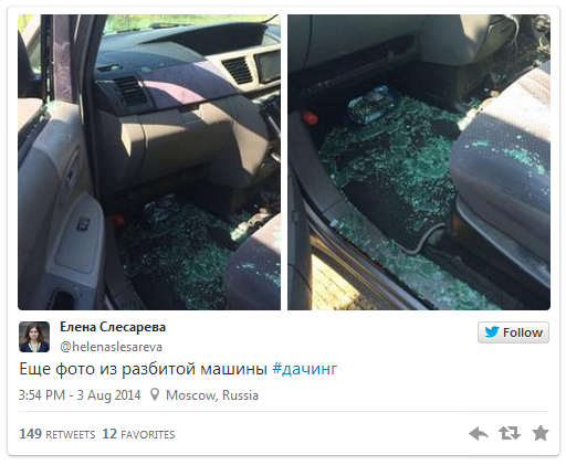 В мае в рамках так называемого «дачинга» у кооператива «Сосны» в Истринском районе Подмосковья, где расположены дачи замглавы администрации президента Вячеслава Володина, вице-спикера Госдумы Сергея Неверова и других высокопоставленных представителей партии «Единая Россия», были задержаны девять человек. В этот раз участники «дачинга» столкнулись не только с противодействием правоохранительных органов. На них совершили нападение неизвестные молодые люди – при, как говорят активисты, попустительстве полиции.