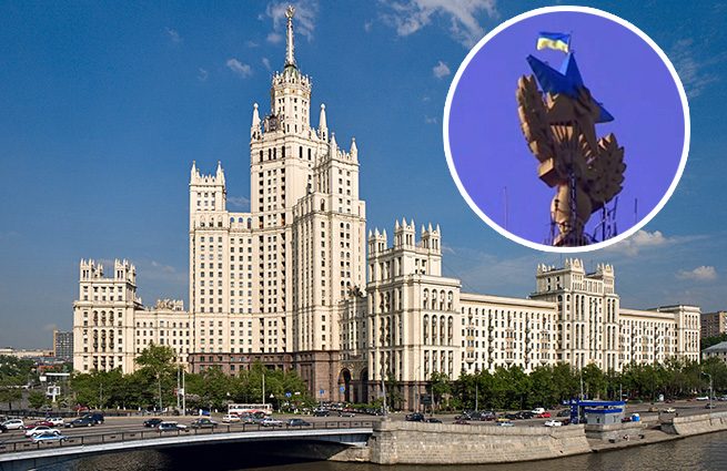 На сталинской высотке в Москве вандалы вывесили флаг Украины