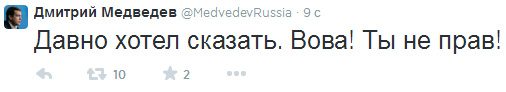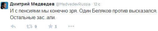 В Twitter Дмитрия Медведева появилось сообщение о его отставке