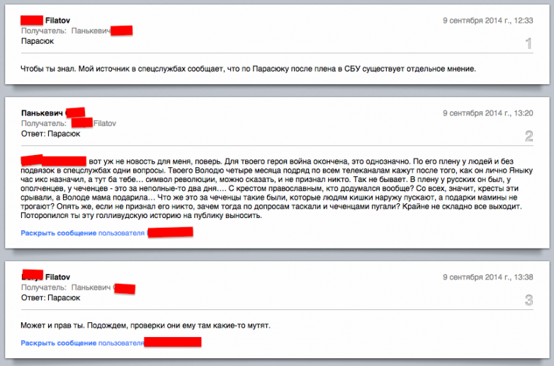 Ключевой ее элемент – расколовшийся сотник Парасюк. Здесь надо привести ветвь переписки полностью, чтобы было больше драмы и ада. Ну, поехали…