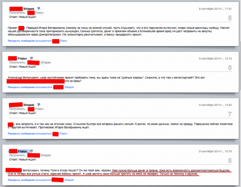 Из сообщения Панькевича не очень понятно, когда был сам расстрел, очевидно в мае, а тела выкопали только сейчас. Из переписки следует, что один из отрядов батальона Днепр уничтожил 37 мирных жителей, среди которых было 19 евреев. Учитывая достаточно сильную националистическую атмосферу в таких батальонах, все это становится маленьким украинским холокостом. Конечно, нет деталей. Кто нашел этих погибших? Как определили, что это евреи? Кто устроил захоронение и паковал тела в мусорные пакеты? Филатову также пишет и Левин, который сообщает ему о слухах о расстреле евреев. Напомню, предположительно Левин является председателем еврейской религиозной общины Киева и Президентом Всемирного Форума русскоязычного еврейства. Однако, план «на кого свалить вину за расстрел евреев» уже готов.