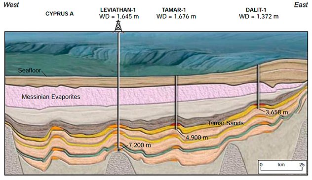 Однако не стоит забывать, что добыча нефти и газа может быть дорогим удовольствием – глубина моря на месторождении «Тамар» составляет более 1000 метров, а глубина залежи от уровня моря – приблизительно 5500 метров. Месторождение «Далит» находится в районе с глубиной моря около 1200 метров, при этом сама залежь вскрыта на глубине около 3700 метров от уровня моря. Месторождение «Левиафан», самое крупное, находится в 135 км от израильского берега, при глубине моря 1634 метра, газоносный пласт залегает на глубине 5800 метров ниже дна моря, а ожидаемые нефтеносные пласты еще глубже – до 7200 метров. Кипрское месторождение «Афродита» – совсем глубокое. Газоносный пласт там залегает на глубине 6000 метров от морского дна при глубине моря 1700 метров.