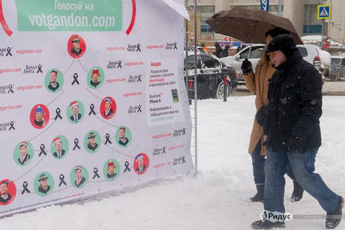 Несмотря на сильный снегопад, прохожие всего за пару часов разобрали несколько тысяч средств контрацепции с изображением оппозиционных лидеров.