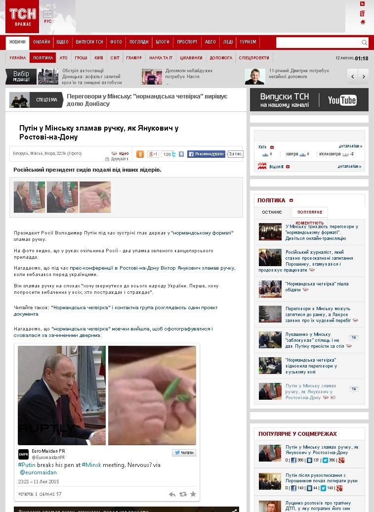 Украинские СМИ придумали «новость» о сломанном Путиным карандаше