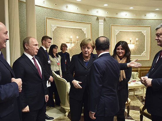 В Минске закончился первый раунд переговоров «нормандской четверки». Спустя два с половиной часа Владимир Путин вышел из комнаты в хорошем настроении: проходя мимо журналистов, он игриво щелкнул пальцем по желтым микрофонам грузинского телеканала «Рустави». Ангела Меркель в это время жестами и словами призывала к спокойствию разгоряченного Петра Порошенко.