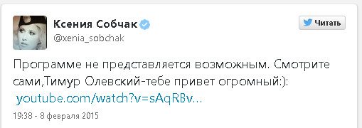 После этого, не сумев одержать победу в споре с живыми людьми, Ксения Собчак стала изливать свои переживания в Twitter, где написала «Я в аду», «Меня просто трясет», и что больше никогда не будет ходить на федеральные телеканалы.