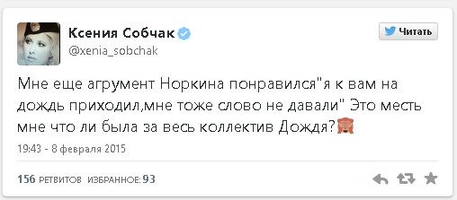 На вопрос, каким источникам информации она доверяет, Собчак внятно ответить не смогла. Вместо этого она стала кричать, что ей затыкают рот и не дают сказать ни слова. А когда ведущий Андрей Норкин стал призывать ее к порядку, и вовсе заявила, что сейчас уйдет из студии.