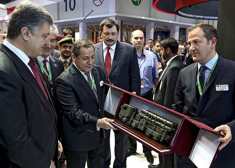У стенда «Укроборонпрома» его с раннего утра ждали несколько десятков камер и корреспондентов различных изданий. Ни до одной из других украинских компаний (на выставку приехали, в частности, двигателестроители из «Мотор-Сч» и самолетостроители из «Антонова») господин Порошенко так и не дошел, предпочтя турецкий концерн Roketsan, специализирующийся на производстве ракетного вооружения. Журналистов близко к президенту Украины не подпускали: пока его охранник силой выводил со стенда корреспондента «РИА Новости», Петр Порошенко с представителем Roketsan переместился в переговорную комнату. По информации «Ъ», украинскую делегацию интересовала возможность совместной разработки зенитного ракетного комплекса. Пусковую установку, шасси и систему управления Украина готова разработать сама, а ракету (предположительно калибра 300 мм) планирует заказать у стороннего производителя, рассматривая турецкую компанию в приоритетном порядке.