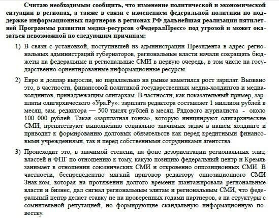 Еще более любопытно, что представители госсми при этом уверены, что им не доплачивают. Сотрудник прикормленного администрацией агенства «ФедералПресс» Иван Ерёмин пишет жалобное письмо Анисимову, сообщая что на пропагандистском фронте платят мало, а вот вражеским независимым журналистам с Ura.ru платят по 100 тысяч (тут Ерёмин, конечно, врет), а редактору оппозиционного Знак.ком дали, мол, неоправданно мягкий приговор: