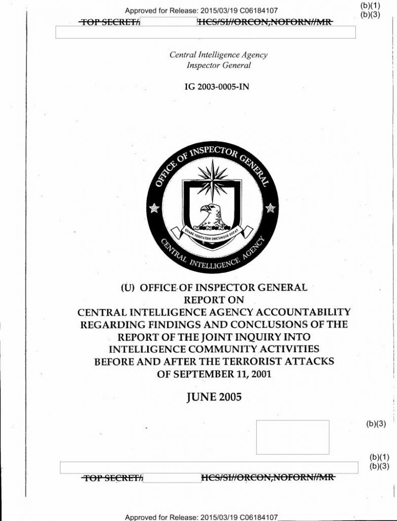 В числе прочих документов — заявления бывшего директора ЦРУ Джорджа Тенета касательно отчёта Управления генерального инспектора ЦРУ 2005 года, которые предоставляют другое видение деятельности агентства в рамках событий теракта. В этих заявлениях Тенет отвечает на обвинения в адрес руководства ведомства. В частности он написал, что «операции под прикрытием были неудачны из-за отсутствия достаточных разведданных».