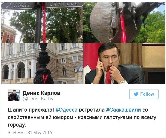Вечером 29 мая стало известно о назначении Михаила Саакашвили губернатором Одесской области. Сначала мало кто поверил, что подобное действительно могло случиться. Внезапную новость сперва восприняли как шутку и оставили почти без внимания. Однако на следующий день одно за другим вышли официальные подтверждения, и соцсети моментально переполнились остроумными (и не очень) шутками.