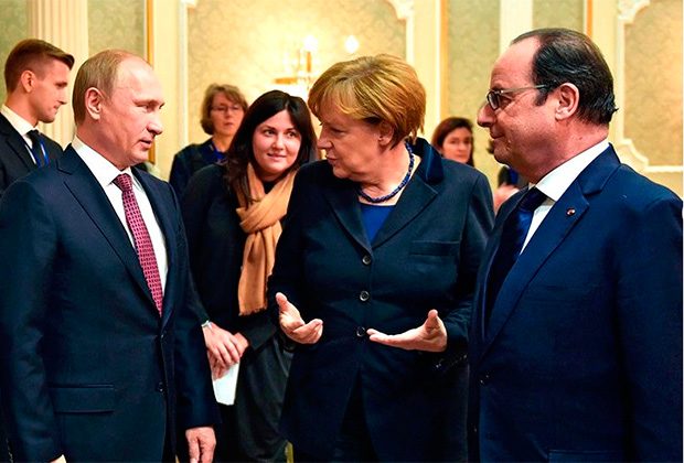 Владимир Путин, Ангела Меркель и Франсуа ОлландФото: kremlin.ru