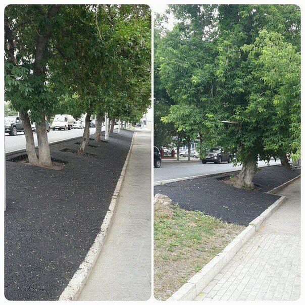 Теперь ни один иностранец с его глупыми традициями и странным неприятием запретов не сможет вытоптать этот газон даже если захочет. Асфальтовые газоны положили в Уфе сразу в нескольких местах – на улице Карла Маркса, на улице Новомостовой возле бани, на улице Шафиева возле перекрестка с проспектом Октября.