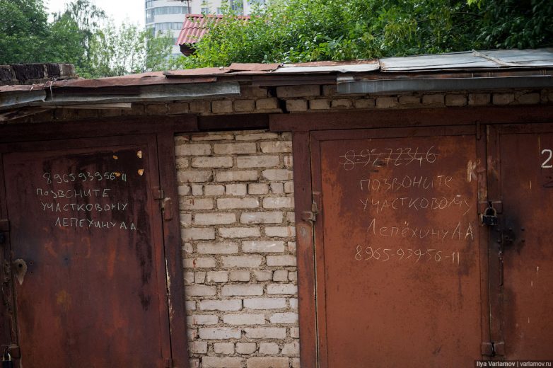 29. Не найдя владельцев гаражей, участковый пишет мелком послания. Трогательно. А что если владельцы так и не объявятся? ;)