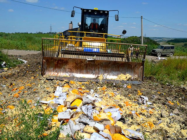 Кампания по уничтожению продовольствия, попавшего под продуктовое эмбарго России, в самом разгаре. По всей стране давят бульдозерами, сжигают и перемалывают фрукты, овощи, мясную и молочную продукцию.