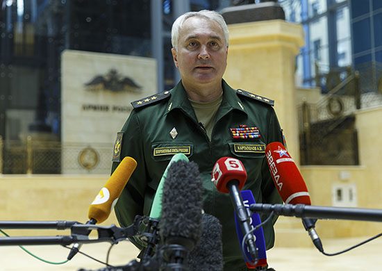 Перед журналистами выступил начальник Главного оперативного управления Генштаба Вооруженных сил РФ генерал-полковник Андрей Картаполов. Он отметил, что о начале воздушных ударов российской авиации по объектам ИГИЛ было объявлено заранее: США информировали и по линии Минобороны, и по линии МИД. По его словам, американская сторона уведомила Минобороны РФ о том, что в зоне действия российской авиации «никого, кроме террористов, нет», передает «Интерфакс».