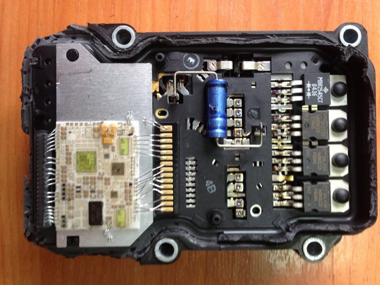 Даже серьёзные производители автомобильной электроники стараются избегать использования многослойных печатных плат. А то и вообще отказываются от этих технологий монтажа. Возьмём самые ответственные узлы, например тормозную систему автомобиля: посмотрите на внутренности блока ABS производства Robert Bosch GmbH (такой в Subaru стоит):