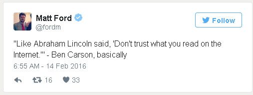 «Like Abraham Lincoln said, 'Don't trust what you read on the Internet.'» — Ben Carson, basically