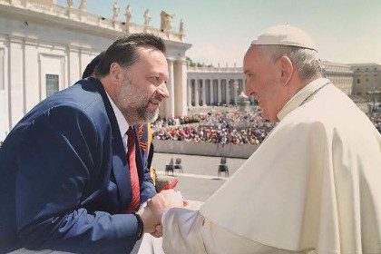 В четверг, 5 мая, Дорохин на аудиенции в Ватикане у Франциска поздравил понтифика с наступающим Днем Победы и попросил его надеть георгиевскую ленточку.