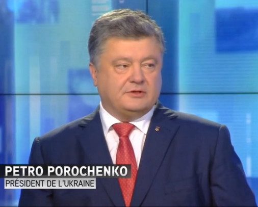 В его отсутствии он обвинил Россию и призвал международное сообщество, в частности ОБСЕ, провести на территории его страны спецоперацию, а также взять под свой контроль как российско-украинскую границу, так и линию соприкосновения враждующих сторон.Сегодня утром у iTELE в эфире уникальный гость – президент Украины Виктор Порошенко. Здравствуйте. Франция сейчас принимает у себя чемпионат Европы по футболу. Четыре года назад ваша страна, Украина, принимала у себя это соревнование. Как всего за четыре года Украина из страны-организатора крупного футбольного соревнования превратилась в страну в состоянии войны?