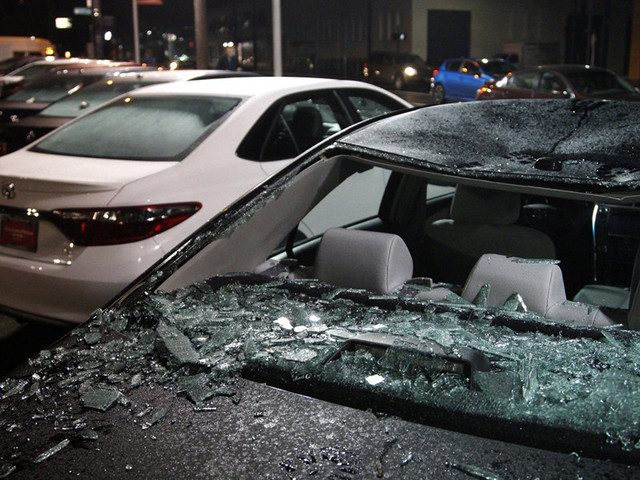 По данным полиции, протестующие вооружились камнями со стройки, разбивают окна зданий, наносят повреждения автомобилям, атакуют полицию.