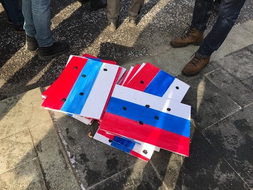 14:30 РБК сообщает, что начало марша задержали из-за растяжки «Путин — это война», которую пытались пронести на шествие. Колонны начали движение.