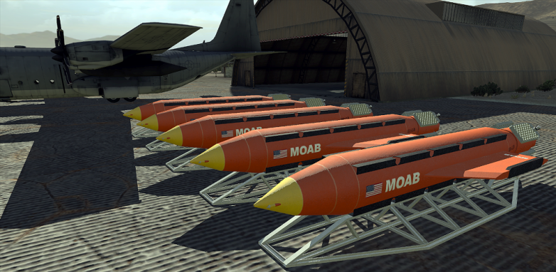 GBU-43 (MOAB) — американская фугасная авиационная бомба, одна из самых больших авиабомб, оснащенных системой спутникового наведения, разработанная в 2002-2003 годах. Вес GBU-43 — 9,5 тонны, из которых 8,4 тонны приходится на взрывчатое вещество.Сила взрыва GBU-43 составляет 11 тонн в тротиловом эквиваленте, радиус поражения — около 140 метров, частичные разрушения происходят на расстоянии до 1,5 километра от эпицентра. До этого момента в арсенале США было 15 таких бомб.
