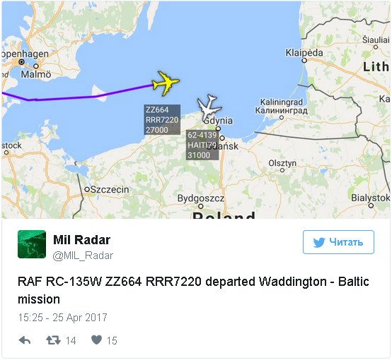 27 февраля 2017 года самолет-разведчик RC-135W с бортовым номером 62-4138 приблизился к граница России со стороны Польши. В середине января одновременные полеты вдоль границ Калининградской области выполнили самолеты ВВС США и Швеции.Daily Mail отмечает, что разработка RC-135W стоила бюджету Великобритании 650 миллионов фунтов стерлингов.