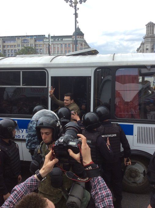 Корреспондент телеканала «Дождь» сообщил, что в толпе на Тверской распылили газ, «у многих людей красные глаза». Два дня назад московская полиция объявила, что якобы получила сведения о неких людях в масках, которые собираются распылить на антикоррупционном митинге газ из баллончиков. Глава избирательного штаба Навального Леонид Волков, комментируя информацию, заявил, что «мэрия Москвы хочет пригнать на митинг 12 июня провокаторов в масках с баллончиками».