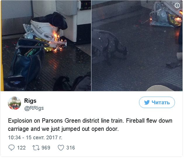 В настоящее время поезд, в котором произошел взрыв «наполен дымом», пишет Metro. Люди, выбравшись из вагонов, остаются на платформе. По громкой связи им, по данным издания, сказали не покидать «Парсонс-Грин» до эвакуации.