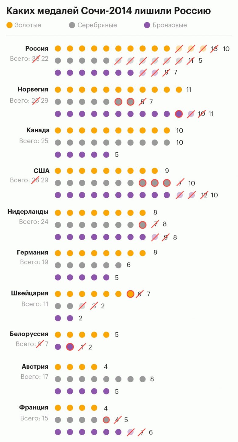 МОК после этого инициировал перепроверку допинг-проб россиян с Олимпиады в Сочи. По ее результатам Россия уже лишилась 11 медалей Игр 2014 года, в результате чего сборная страны осталась без первого места в общем медальном зачете.