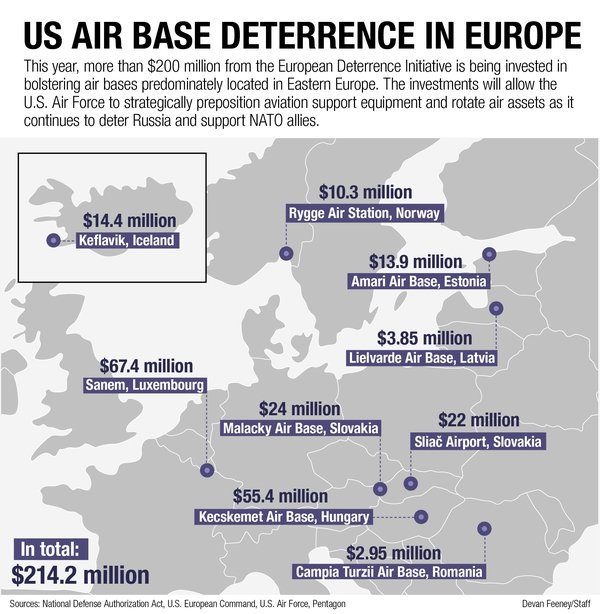 Как уточняет AirForceTimes, план оборонных расходов США в новом году составляет около 214 млн долларов — они предусмотрены на модернизацию и строительство военных объектов в Исландии, Норвегии и странах Восточной Европы.