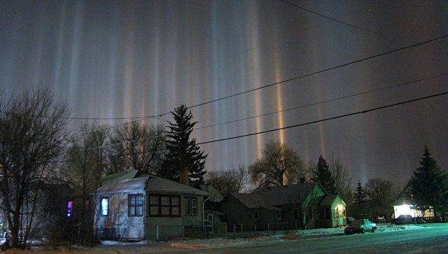 Подобное явление происходит из-за того, что в холодном воздухе образуются кристаллы, которые отражают свет.