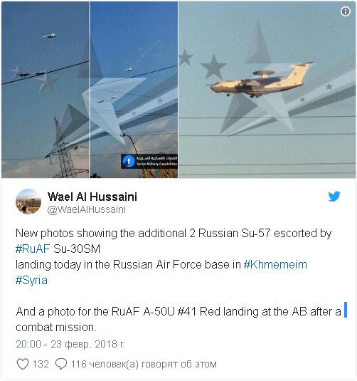 В четверг массмедиа, опираясь на данные из социальных сетей, сообщали о приземлении в Хмеймиме двух Су-57. Официального подтверждения этой информации нет.