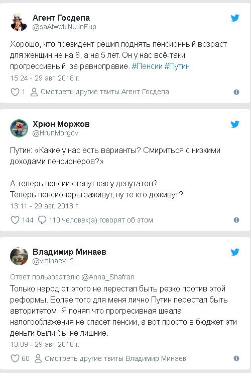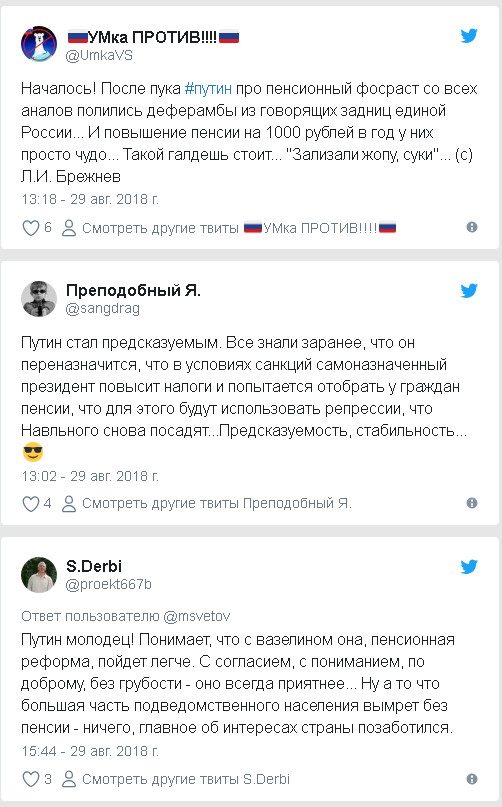 В отличие от государственных каналов, где моментально началось восхваление президента, взвалившего на свои плечи посильную только ему ношу спасения пенсий российского народа, экономисты, эксперты и просто пользователи соцсетей сошлись во мнении, что ликовать и радоваться относительно предложенных Путиным льготнет никаких причин: так называемое «смягчение» реформы — только косметическая процедура, просто россиян ограбят немного меньше.