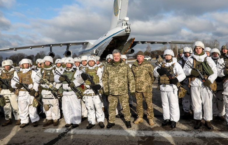 Петр Порошенко опубликовал в своем Facebook «патриотичное» фото, на котором он стоит перед строем украинских десантников, при этом на форме одного из солдат слева от Порошенко отчетливо видна эмблема танковой дивизии СС «Мертвая голова» — череп со скрещенными костями.