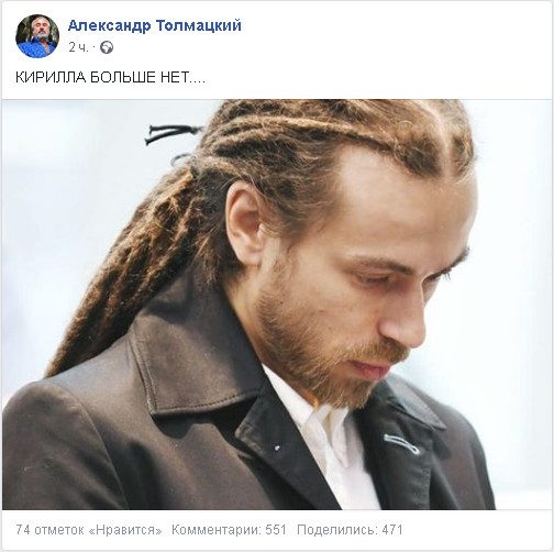 О смерти рэп-исполнителя на своей странице в Facebook сообщил его отец Александр. «Кирилла больше нет», — написал он.
