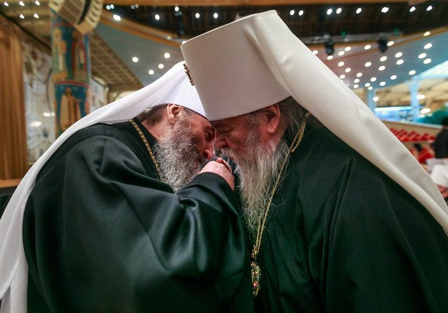 У них принято руки целовать, именно это они и собираются делать. Несколько раз была на богослужении, после службы идет помазание, мирой лоб крестят, так вот люди подходят и целуют батюшке руку. Не смогла себя переосилить и подойти это сделать. Никому никогда не целовала рук, кроме маленького дитя.