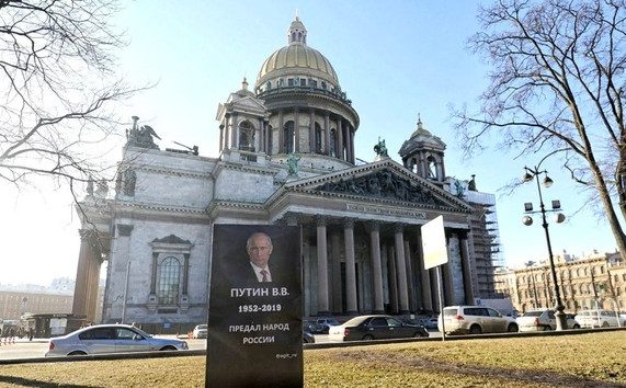 Очередное «надгробие» с изображением президента РФ Владимира Путина появилось в Санкт-Петербурге напротив Исаакиевского собора. Активисты движения «Агит Россия», установившие надгробие, пояснили на странице организации в соцсети «ВКонтакте», что «за принятые антинародные законы, постоянное вранье и отвратительное правление Путин умер для граждан России».